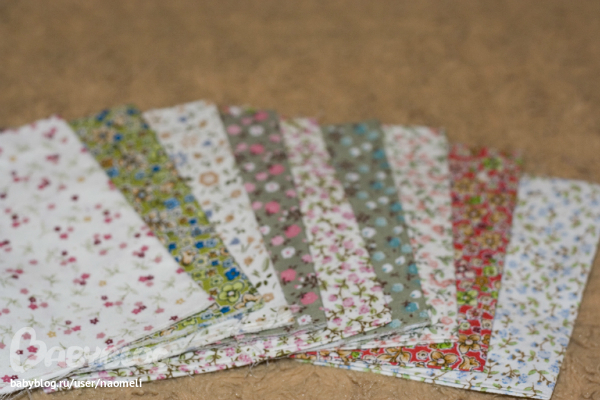 1) Набор "Цветочный" (9 отрезов). Подходит для пэчворка (можно сделать подушки). Плотные яркие ткани размером 25*25 см. Цена 450 р.