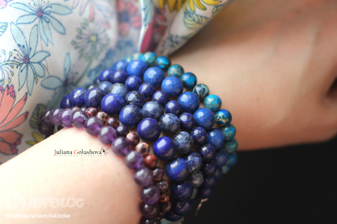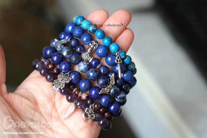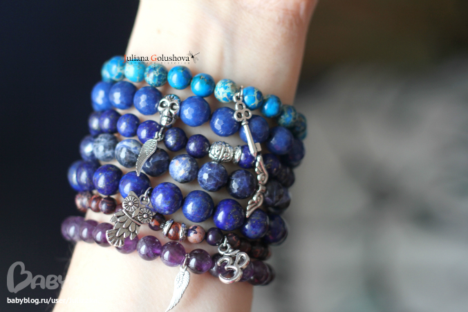 Бижутерия для слингомам. Слингобусы. Грызунки.Сверху вниз: Варисцит, садолит граненный, лазурит, жадеи граненный, лазурит,варисцит, аметист.