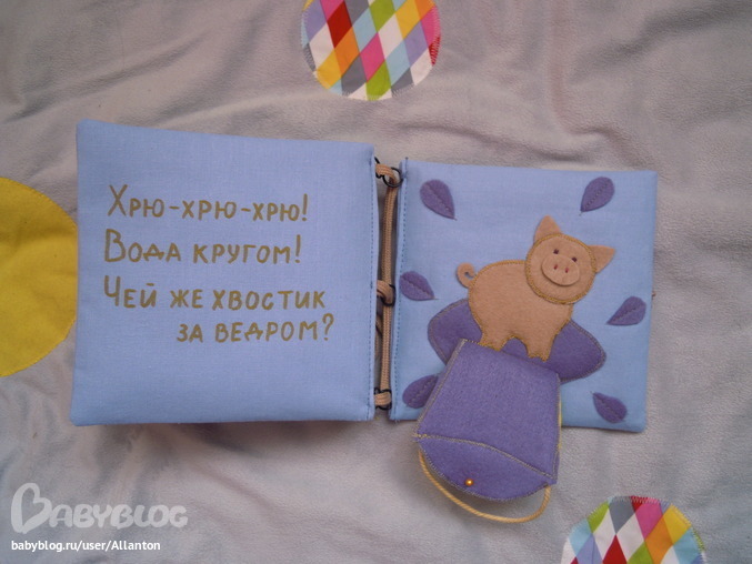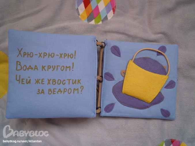 Книгу на днях подарили дочери подруги на трехлетие. Подруга потом сказала, что доченька оценила. Мне приятно, хоть и не моя идея, но делала я. Сейчас надо такую же для Яны сшить