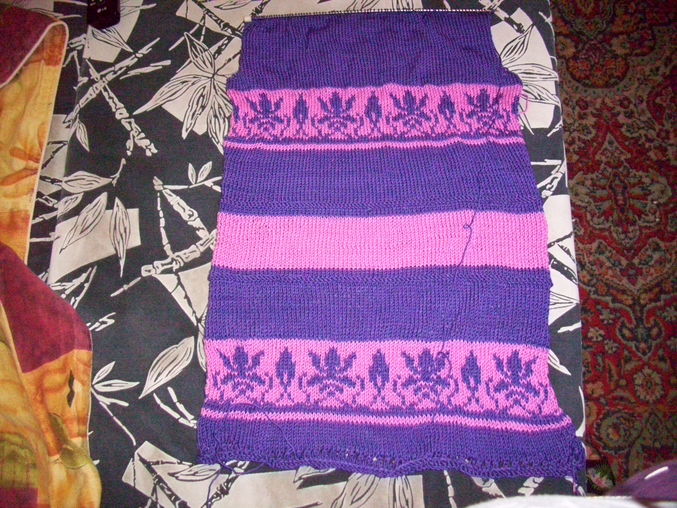 Спинку довязала - пока вот такое фото, чуть позже выложу начало полок и спинку целую. Жаккардовое вязание начинает мне нравиться