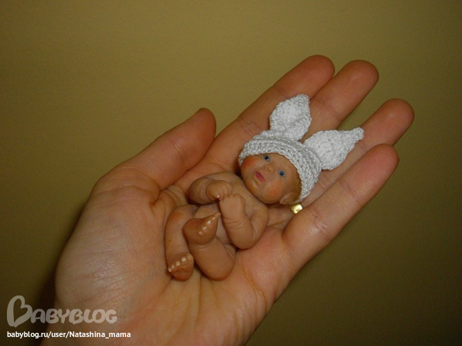Родилась у меня в праздник Прощенного Воскресенья, вот такая зайка))) Ростик 7 см, вместе с люлькой-переноской 10 см, запекаемая пластика Ливинг Долл, глазки стеклянные немецкие Лауша, ручной работы, 3 мм, волосики США "Реал Эффект")))