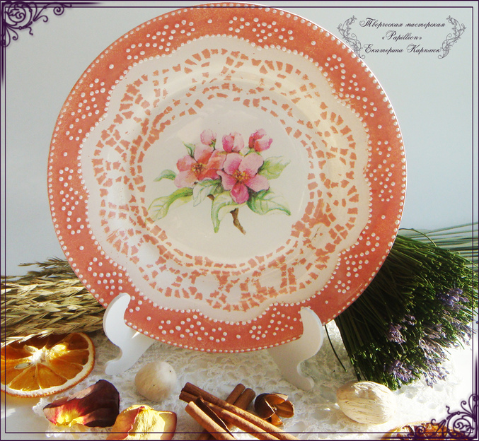 Кать, ну какая же нежная тарелочка, а досочка оченьгармоничная и винтажная вышла!