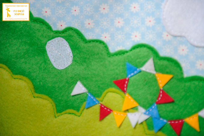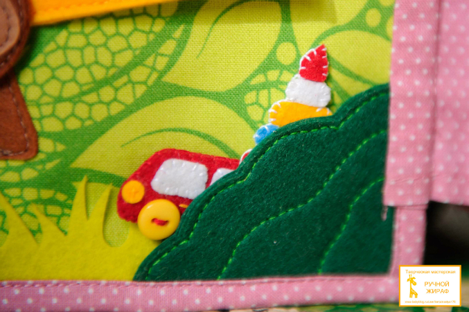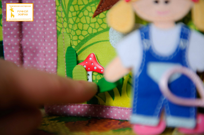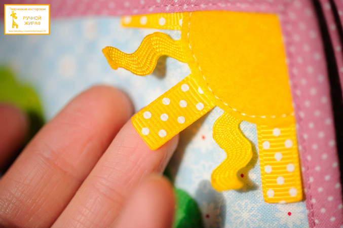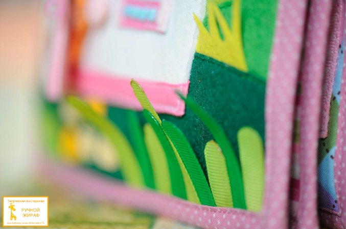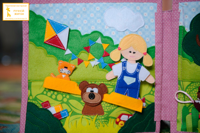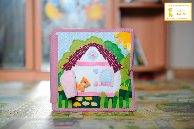 За дверкой спряталась кошечка) Лучики у солнышка и травку можно трогать пальчиками)