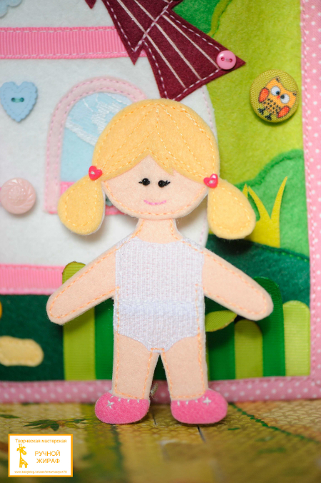 1. В нашем домике живёт маленькая девочка))) У куколки маечка и трусики из липучки, для удобного "одевания" одежды!