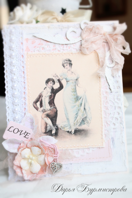 Нежная открытка в стиле шебби шик.Выполнена в качестве вдохновления для задания "Давайте потанцуем" блога артчойс,от меня как от приглашенного дизайнера.Может быть подарком по любому поводу! Очень нежная и красивая,сделана с любовью!