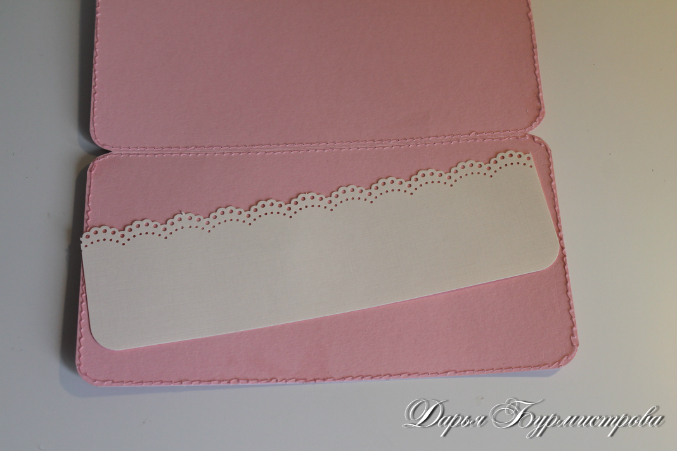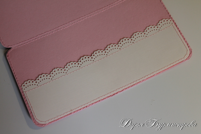 К сожалению случайно удалила первые фото,теперь объяснять буду на словах.Вырезаем прямоугольник желаемого размера из кардстока или акварельной бумаги.Сгибаем пополам.Можно обработать углы дыроколом края.Вырезаем из бумаги с рисунком 2 прямоугольника,которые на 2мм меньше заготовки с каждой стороны.Также можно обработать края дыроколом,желательно прострочить по контуру на машинке.Приклеиваем сверху.Теперь займемся внутренностями-вырезаем прямоугольник,который по ширине на 2 мм с каждой стороны меньше основы,а по высоте меньше наполовину.Обрабатываем углы дыроколом и одну длинную сторону дыроколом края.Желательно прострочить на машинке.Приклеиваем кармашек.Все,основная работа готова!
