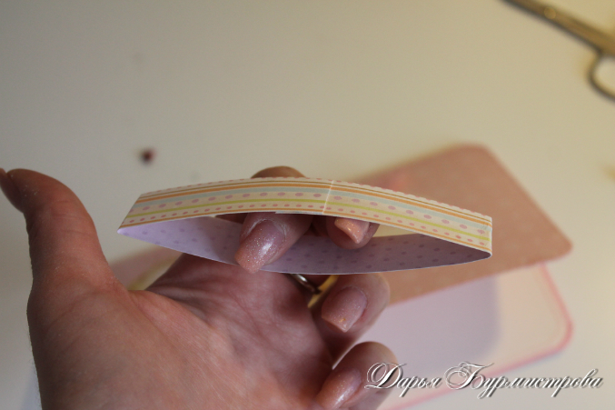 Теперь займемся фиксацией-возьмем бумажную полоску 1,5-2 см шириной и длиной+2см запаса к обхвату нашего конверта.Обернем вокруг конверта-тут важно не переборщить с тугостью,но и не сделать слишком свободным.Подождать пока высохнет-примерить.
