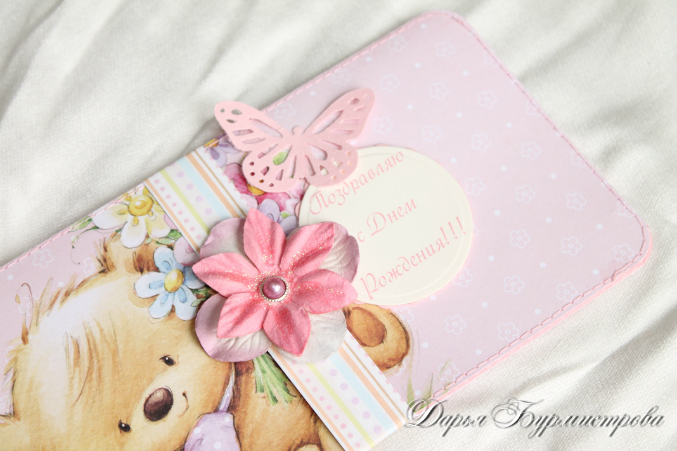 Маленький совет,чтобы лента одевалась легче слегка согните конвертик.Я украсила ленту цветком,вставила в серединку брадс-так цветочек будет сидеть надежнее!