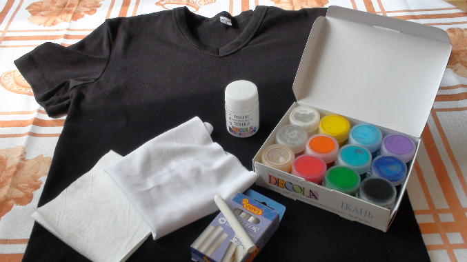 - картон для прокладывания между сторонами футболки (чтобы краска при пропитывании ткани не перешла на другую сторону)