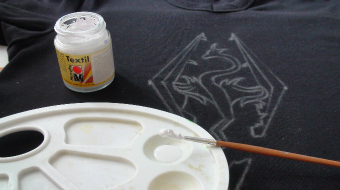 - краски акриловые по ткани (как я уже писала, я пользовалась только одним цветом - белым, причем не Decola, a Marabu)