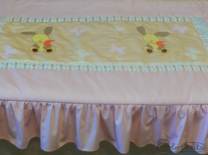 http://www.babyblog.ru/user/lenta/A_Lena и ее малышки Софии. У лены был бортик с собачкой, к которому она попросила сделать покрывалко с оборкой. Вот что у нас в итоге получилось: