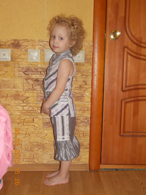 Спортивные штаны для младшей дочки сшились из низа взрослых штанов.