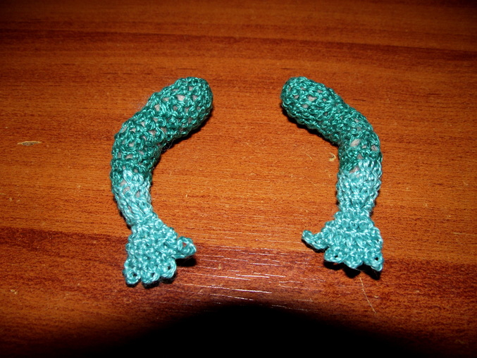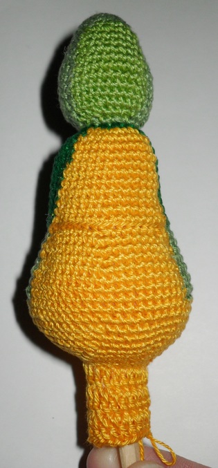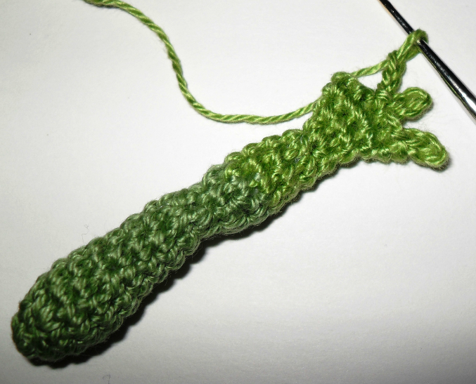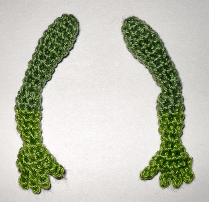 Ручки (2шт) – вяжем по спирали зеленой и светло зеленой нитью