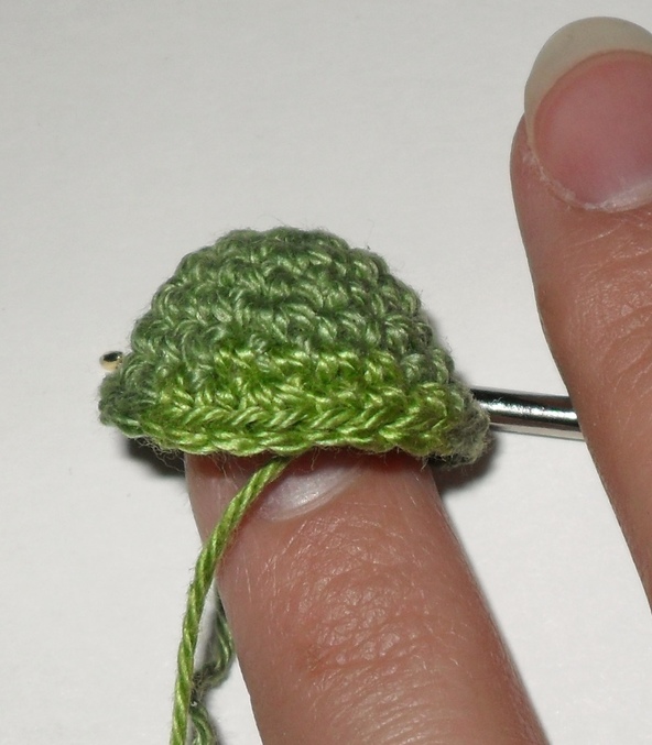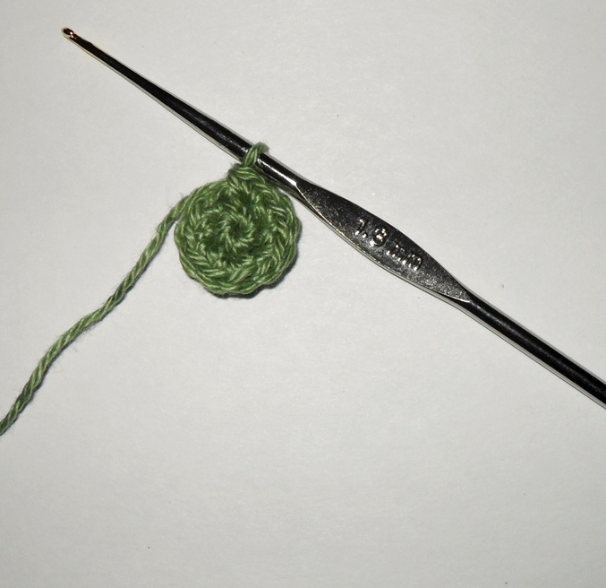 1р. 6сбн в кольцо амигуруми зеленой нитью