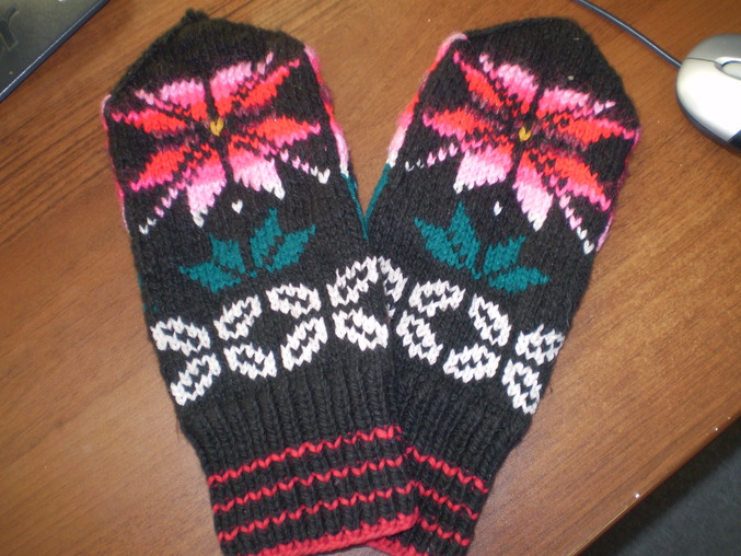 Вообще-то, это моя третья пара варежек, первые две совсем простые были, а тут решила рискнуть и сделать цветные