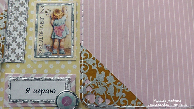 Четвертый разворот: "я играю" ( на 3 фото) и "я кушаю" (на 2 фото плюс под фотографией место для записи, можно записать когда ввели прикорм или что любит малышка, а вот сфоткать я это забыла...)
