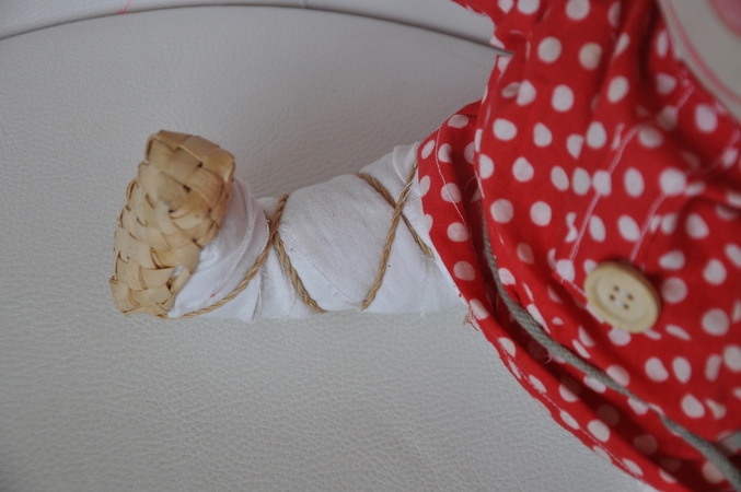 Будет рад стать вашим Домовенком и радовать вас своим позитивом)) а если ему в ноги поставить красивую посудину тоже в фольклорном стиле - послужит и помощником, эдаким хранителем съестных припасов))