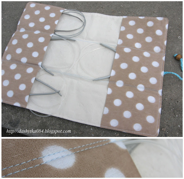 С чехлом для круговых спиц я не могла ничего нормального придумать, пока не увидела у Кати . Вот прям то, что доктор прописал. Очень удобно.