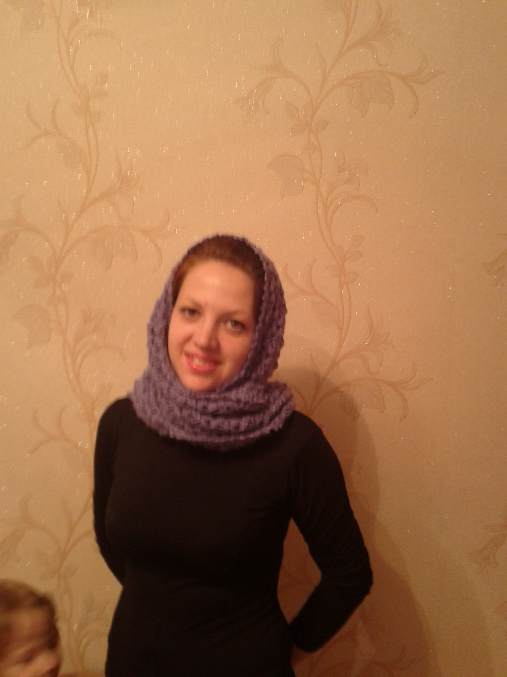 Сиреневый палантин. Связан из ниток Лама, производство Ярн, Россия. Размер 1,5 х 43 см. Первый раз вязала из этих ниток, очень понравились. Мягкие, не колятся. После стирки не растянулись, чуток отпарила. Больше всего понравился вариант на голове, хочу купить себе оранжевые-коричнеые нитки и связать себе, еще снег лежит, успею поносить))