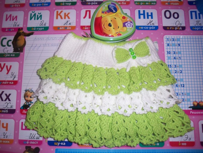 Девочки Спешу похвастаться, связала для дочи юбочку , это моя первая юбочка))) потихоньку продолжаю осваивать крючок и наконец то немного начала понимать схемы)))) не успела сфотографировать свою модельку в юбочке , доченька уснула, позже выложу фото как на ней смотрится))) а пока что только такие фото. Оцените пожалуйста работу новичка в этом деле.