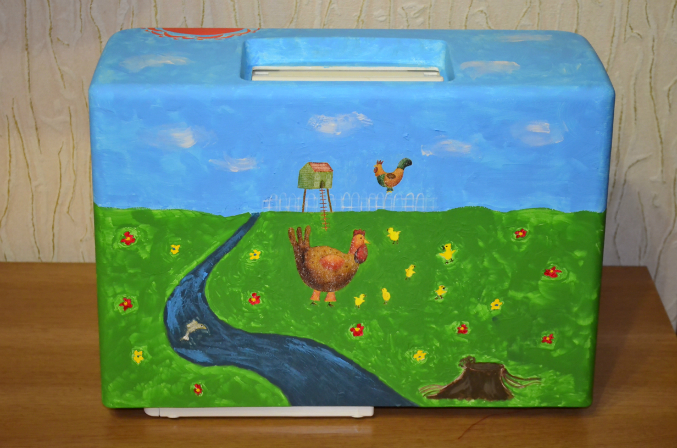 Урок седьмой и самый сложный. Попытка первая: "Семейные радости". Это чехол для швейной машины. Это я пыталась ээээ... дорисовку делать. Но художник из меня тот еще... Короче! Одна сторона, было: