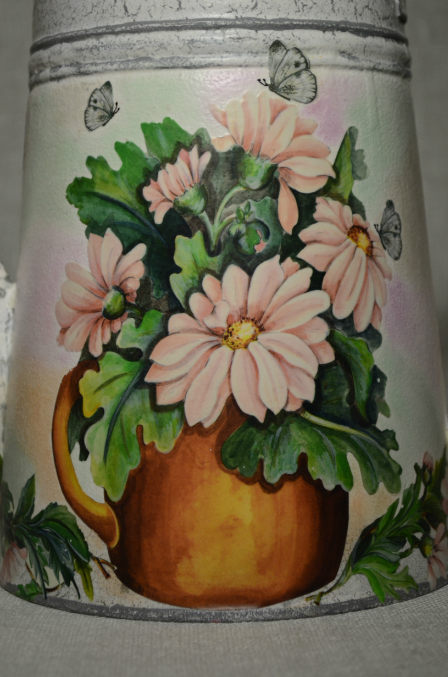 Урок восьмой: "Невесомость". Комплект лейка-кашпо. На кашпо - тени, на лейке - цветна дымка пастелью. Надо бы еще одно кашпо )