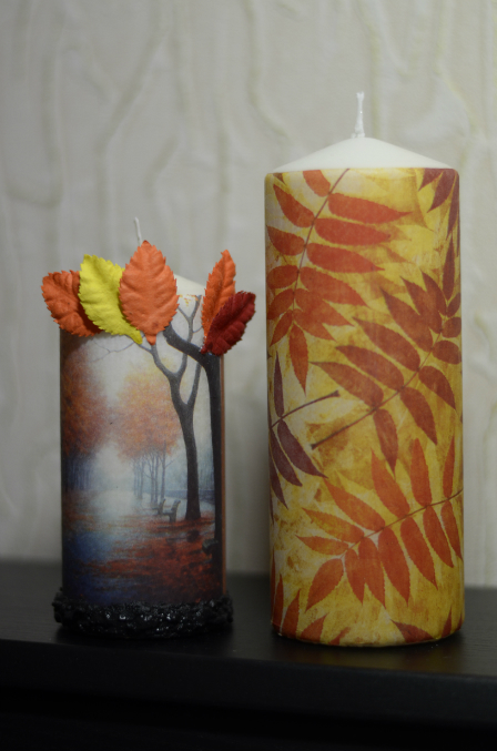 Урок третий: "Осенняя соната". Декупаж на свечах.