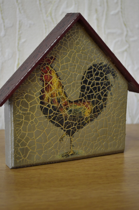 Урок двенадцатый: "Кукареку, дом стерегу!". Ключница - оберег. Оберег потому, что петух - сам по себе оберег дома, отгоняет злых духов. Двухшаговый кракелюр. Результатом недовольна, потому что слишком грубыми получились трещины, а хотелось такой тоненькой золотистой сеточки. Вобщем, работа принята, но ушла в стол. Хочу ключницу, но с тоненькой сеточкой! Будем работать )