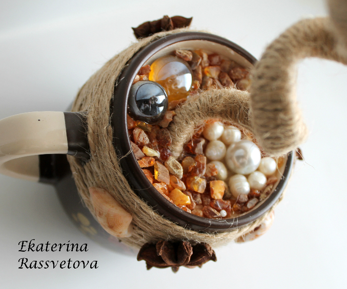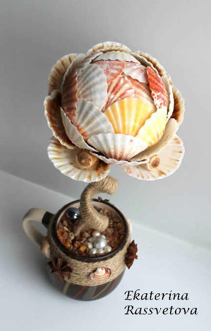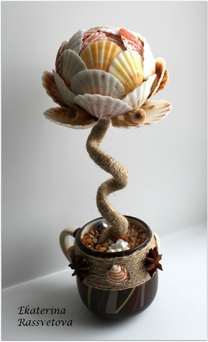 такой клевый!!! первый раз вижу в таком исполнении) не представляю даже как нижние ракушки клеили, столько трудов наверное!шик!