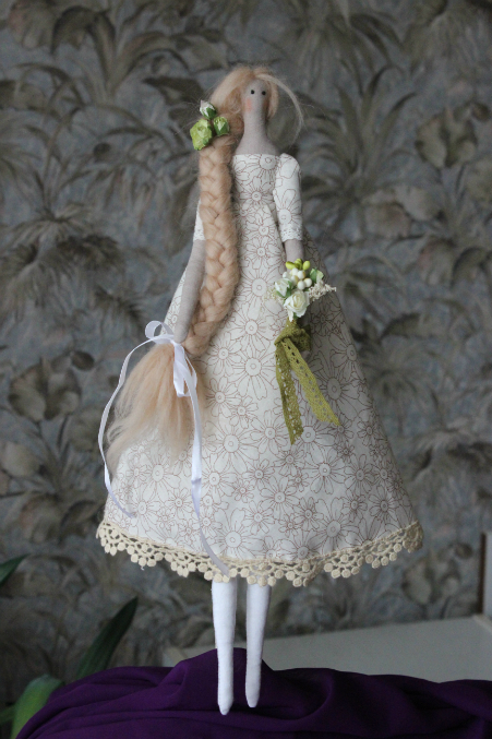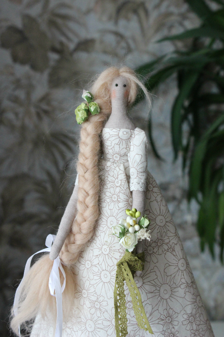 Алина, а цветочки вы покупали или делали? Сколько см она у вас? Сочень нежная весенняя тильдочка) молодчинка