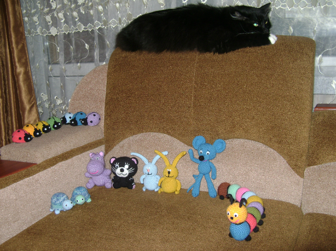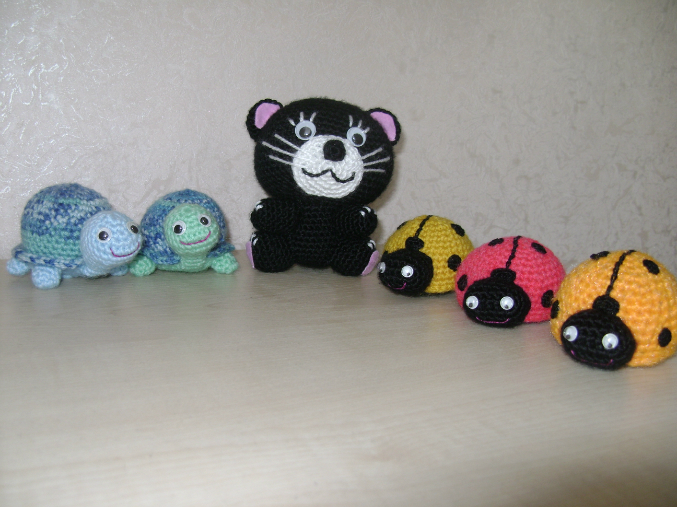 Супер! Такие классные!!! Особенно мне божьи коровки понравились! И гусеница! Я вязала тигра крючком, то мне смешно на него смотреть))) А твои красивые! Молодец!