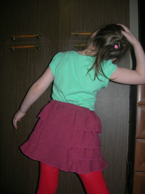 3. Полина вошла в раж. Стала позировать. Эта из бабушкиной юбки. Мне не очень нравится. Воланы должны быть побольше, но ткани мало.