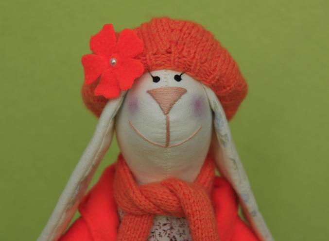 Хотелось позитива, поэтому моя Зайка улыбается. Реснички держутся "на честном слове", пока не придумала как их прикрепить получше. Может есть у кого опыт в таком деле? Щёки румянила пастелью. Что-то как-то не очень получилось :(
