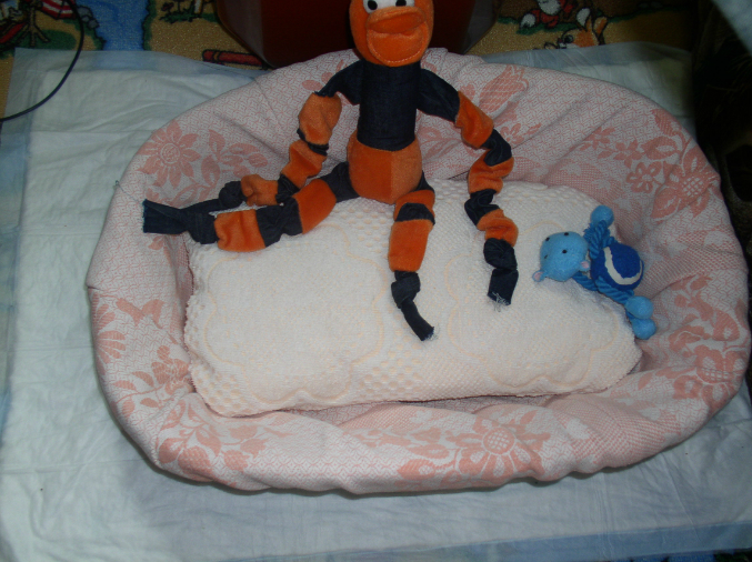 махровое полотенце превратилось в две подушечки в лежак(одна запасная)
