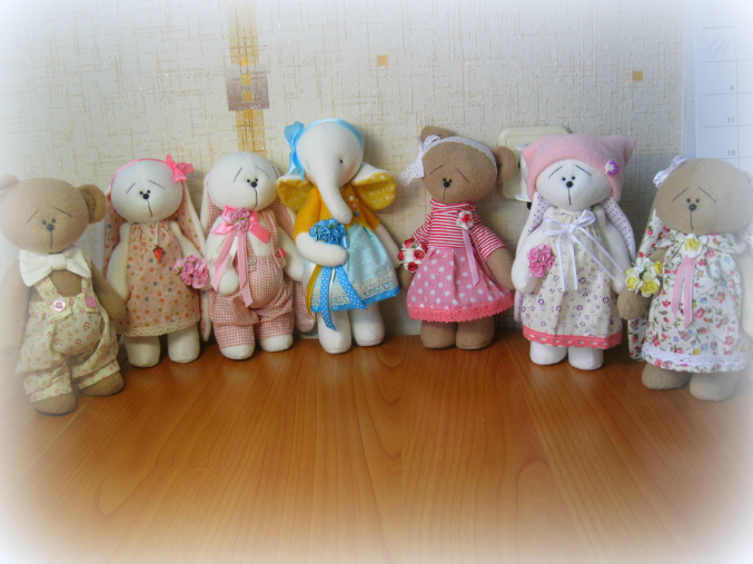 Светлана, посмотрела Ваши работы - такие прелестные детки! Я тоже заразилась, пытаюсь шить. Не могли бы Вы поделиться со мной выкройкой мишки?