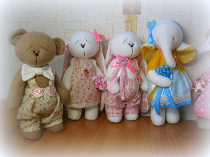 По ценам все ,что на фото зайки.мишки,слоники -800 руб и 200 почта.