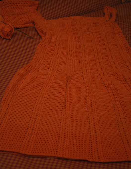 Дело такое. Осенью девушка заказала мне сарафан, сказала, чтобы не спешила, Осенью я закупила пряжу, уверенная, что достоточно (да и забрала все что было в магазе того цвета.