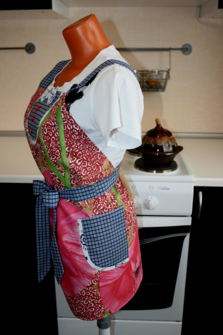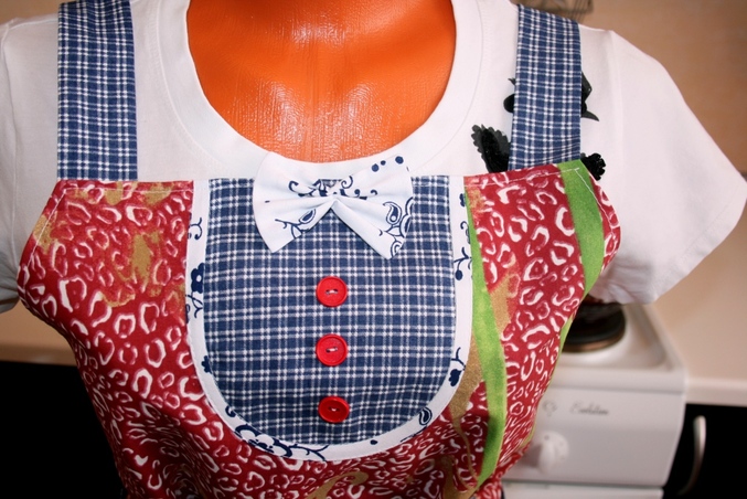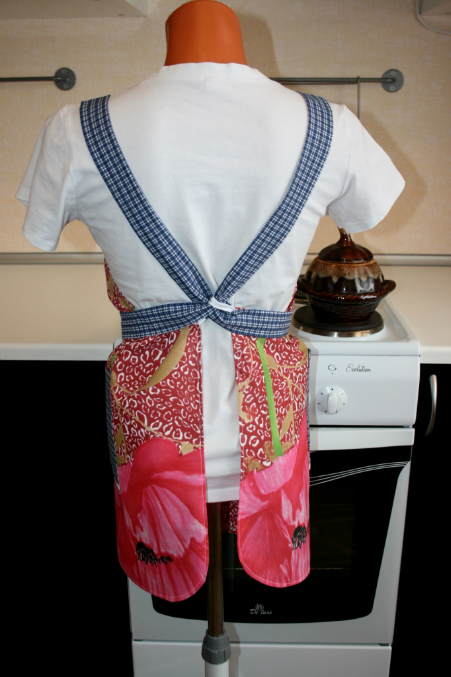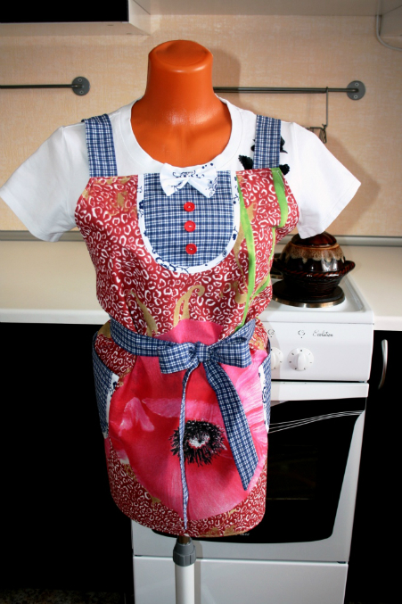 Шитье одежды, выкройки, ремонт одежды, шторы, швейные машины (уже приобретенные)100% хлопок, лямочки, переходящие в пояс, перекрещиваются за спиной, позволяя регулировать размер фартука; украшен декоративным воротничком с бабочкой; по бокам карманы.