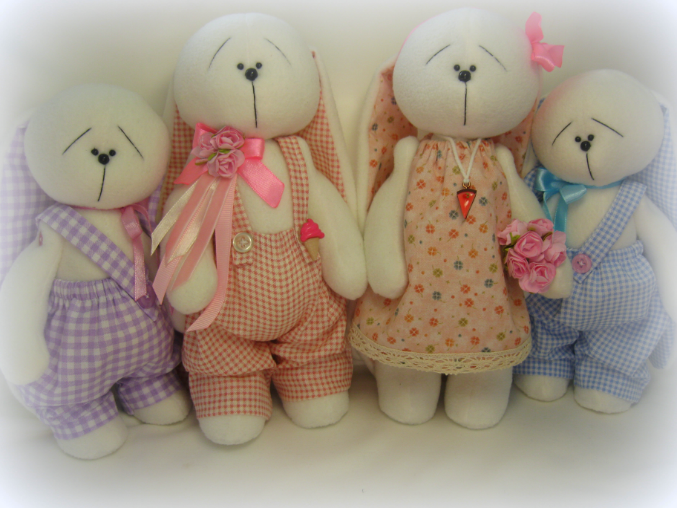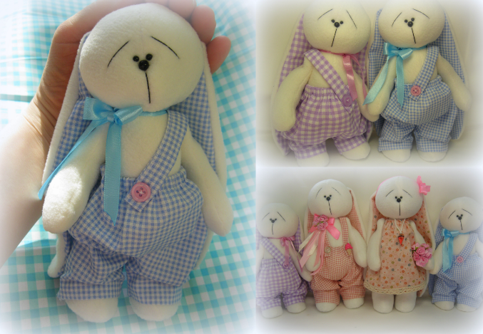 Пару заяк я шила на заказ и после заказчица попросила к этой паре сшить еще малышей,мальчиков зайчиков.А еще я научилась делать коллажи,не знаю как))))методом тыка))))Малыши-17см.Папа и мама 20-22см.