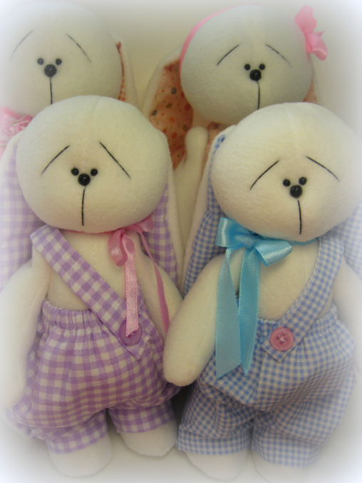 Чудесная семейка!!!! Такие красотули! А штанишки супер!!! У меня уже и подруга "запала" на твоих зайчиков, Светочка!