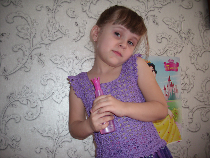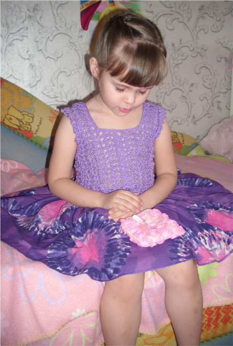 Долго вынашивала идею маечки к этой юбке. Что-то ничего не вдохновляло и совсем что-то отчаялась я... Когда решила, а чего я переживаю. И решила выбрать рисунок и самой по ходу действия пьесы сориентироваться ). Собственно, вот, что вышло. На лето доченьке наряд.