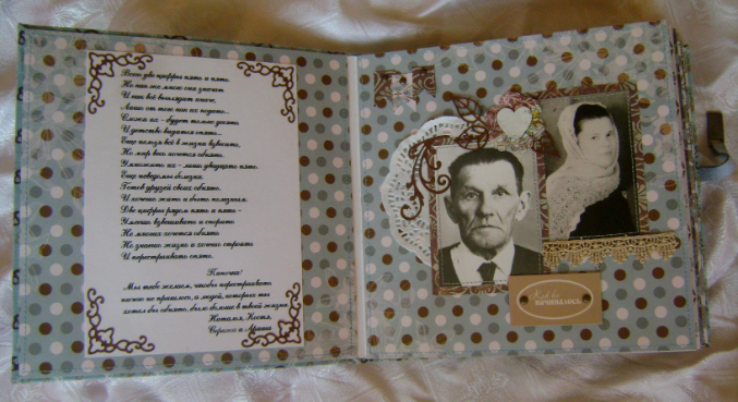 Вот такой альбом получился. Скажу, что я довольна результатом. Все гости тоже были в васторге. А еще папе делали презентацию с его фото, которые сопровождались стихами. Стихи мы заказывали. В этот кармашек на последнем форзаце мы и поселим диск с этой презентацией. Спасибо, что досмотрели.