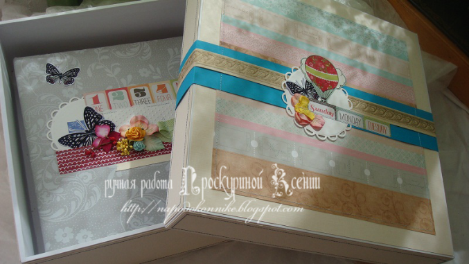 СкрапбукингСемейный альбом 30на30 см из 16ти страниц в переплете и с мягкой текстильной обложкой. Альбом с фотографиями, выполнен на заказ. К альбому прилагается коробка для хранения.
