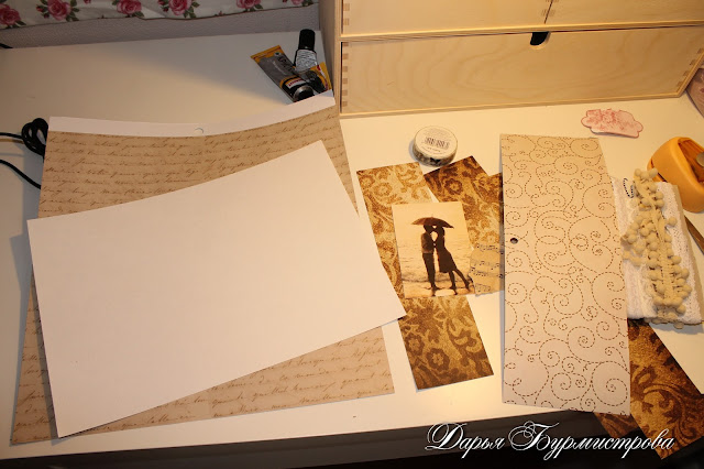 С другой стороны заказчица в догонку к альбому заказала еще и открытку...мужу! Чтобы приурочить ее к юбилею и их грядущему пополнению в семье.Посему я решила совместить приятное с полезным и сделать небольшой МК.