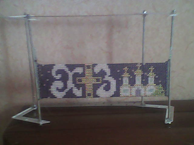 Бисер. Бисероплетение. Украшения из бисера.Девочки вчера сделала станок и попробовала ткать бусинками поясок на яйцо высотой 11,5см. Сегодня закончила, но сделала промашку, слишком высоко получился поясок. Но я ведь только учусь, надо приспособиться делать расчеты.