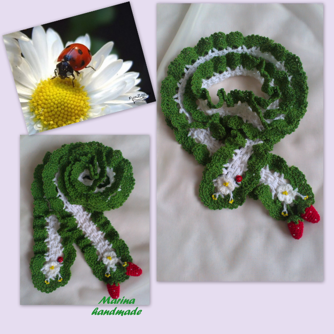 Для шарфика выбрала схему Таши Подаковой из её комплекта "Жар птица" (прошу прощения, если не точна в названии), за что ей огромнейшее спасибо!!!