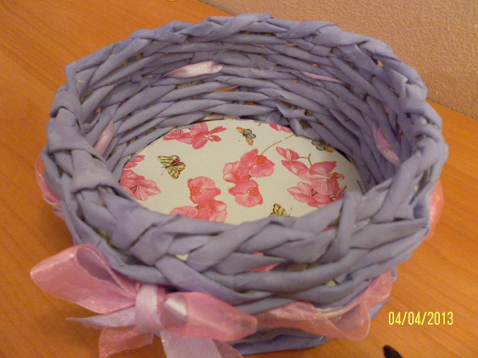 Изделия из бумаги, папье-маше, квиллинг.Не судите строго) Это самая первая корзиночка, вот только вчера сделала. Теперь поняла что нужно и как улучшить. Надеюсь продолжу свое увлечение, вообще загорелась. Эту выкладываю чтобы было с чем сравнить потом.) Весеннего настроения всем!!!
