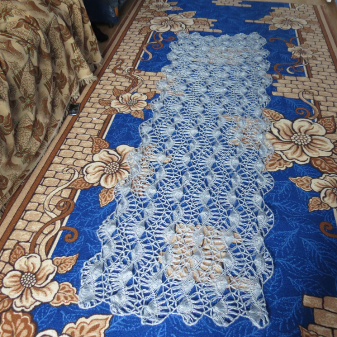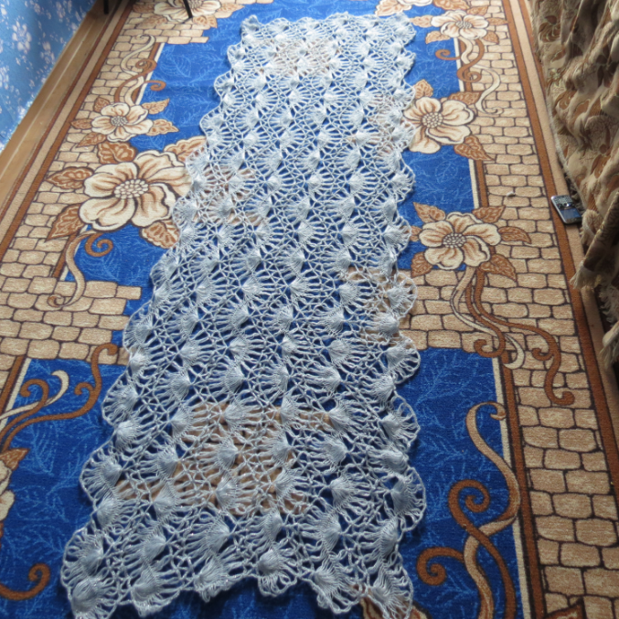 Спасибо!Времени примерно неделя ушла. Да верно считала петельки, по описанию их 462 петли.  Получился очень большой более 2 метров.Можно конечно с нуля, это была моя первая работа на вилке и мне понравилось. Второй работой уже был пляжный дочин комплект, теперь жду новую вилочку ( у старой племянник потерял один зубчик) , идей куча. Если что спрашивайте, всегда помогу и подскажу.