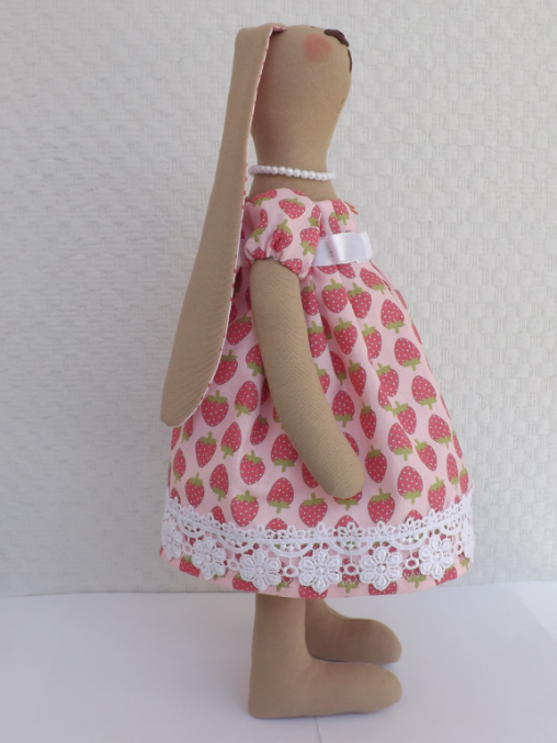 Очень милая мадам! И тканька знакомая;-) у меня тоже такая же лежит, да не знала куда применить) теперь знаю что зайкам она очень идет:-)