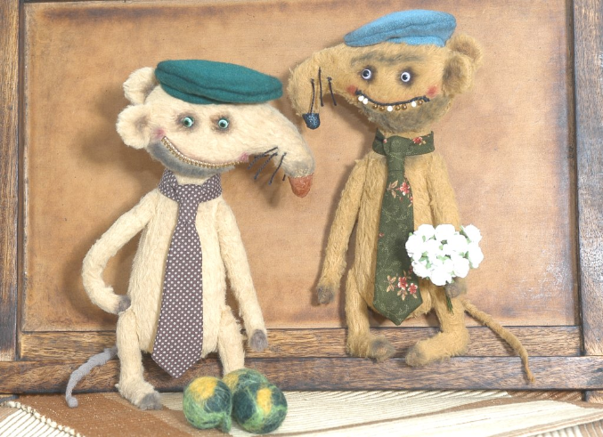 Крысики сшиты из немецкой вискозы, 5 шплинтов, наполнитель - холлофайбер, картузики из сукна, галстучки (почти настоящие :)) -американский хлопок, акриловые глазки.
